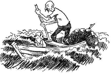В это время из-за угла острова показалась большая рыбачья лодка. Плечистый, похожий на былинного богатыря старик в клеенчатом фартуке и высоких, с раструбами, резиновых сапогах, точно влитой, стоял, прихватив мощным кулаком густую рыжеватую бороду, и пристально всматривался в даль моря. На веслах сидел курносый голубоглазый парень, такой же плотный и широкоплечий.