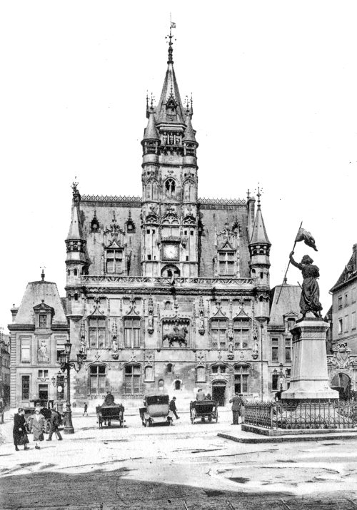 После войны в маленьком Компьене, лежащем на скрещении дорог, стали появляться предприятия пластмассовой, химической и фармацевтической промышленности. Но конечно, не они могут завлечь в Компьень клиентов самой могучей из отраслей французской индустрии – туристической. Иными словами, нас с вами пластмассой ни в какой Компьень не заманишь. К счастью, в императорском городе, несмотря на все передряги, уцелели не только реликвии военной славы (вагон Перемирия, правда, пришлось заново изготовить), но и прекрасные архитектурные памятники прошлого. Начать можно с чудом уцелевшего прелестного здания городской мэрии, построенного аж в 1502–1510 годах, в период поздней готики. Конечно, за истекшие полтысячи лет (и особенно интенсивно в первые три столетия его жизни) здание это достраивали, перестраивали, украшали и реставрировали, но, так или иначе, даже нам с вами, уже избалованным французской архитектурой странникам, здесь есть на что полюбоваться – на фасад с башенками, на балюстраду, на окна, на многочисленные статуи (каких тут только нет персонажей – и Карл VII, и Жанна д’Арк, и святой Реми, и Людовик XI, и Карл Великий…). А над ними – красивые люкарны и элегантная башенка со шпилем, с часами XVI века и колоколом 1303 года – все старое без обману.