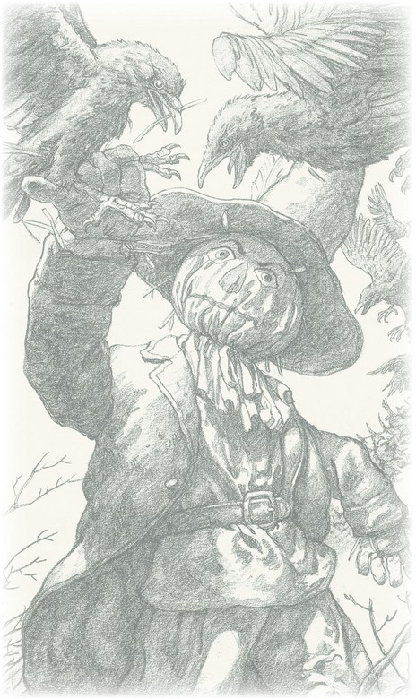 И Вороний Король бросился вперёд, но Соломенный Человечек схватил его за голову и свернул шею. Такая же участь постигла всю стаю.