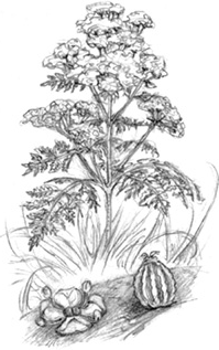 Внимание! Болиголов вызывает смерть вследствие паралича дыхательных путей. Не употребляйте это растение внутрь. Также оно может вызвать раздражение кожи при соприкосновении с ней.