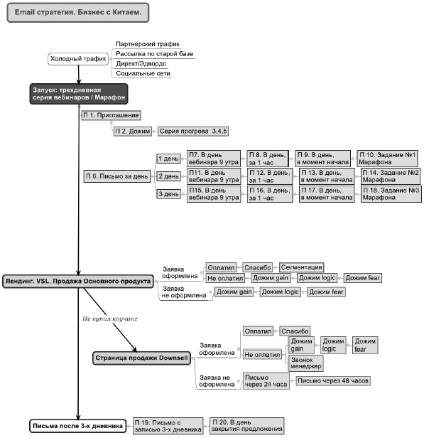 Именно это имел в виду Михаил Дашкиев, говоря о тоннелях в предисловии. Создавая воронку продаж, мы учитываем основные сегменты нашей аудитории и готовим стратегию общения с каждым отдельно. Так, чтобы после привычной регистрации на сайте система начала общаться с человеком и продавать ему.