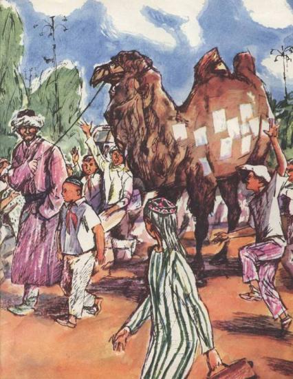 Киргиз вел в поводу рослого двугорбого верблюда. На спине, груди, возле хвоста и почти под самым брюхом горбатого великана призывно белели объявления. Это был не верблюд, а тумба для афиш. Судя по всему, Олим вел этого рыжего верблюда в редакцию фотографироваться.
