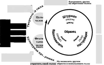 В создании образца для подражания заключен истинный смысл и основа любого действия лидера. Исполнение этой роли начинается с Обретения своего голоса — развития четырех видов интеллекта — и выражения его в видении, дисциплине, энтузиазме и совести. Создание образца для подражания с точки зрения этих личных качеств лидера способно изменить суть всех остальных его ролей.