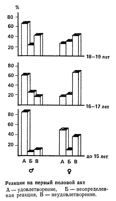 Побудительные мотивы в определенной степени уравновешиваются сдерживающими: по данным С. И. Голода, это моральные убеждения (чаще у девушек), отсутствие достаточной силы потребности (чаще у девушек) и — примерно одинаково у девушек и юношей — опасение последствий, огласки, заражения и отсутствие подходящего случая. По данным X. Грасселя и К. Баха из ГДР, это стыд (53%), страх беременности (50%), боли (17%), своей неопытности (15%), разоблачения (7%), венерических заболеваний (2%) и испытываемое отвращение (2%). Совсем иная структура сдерживающих мотивов описывается М. Козакевичем у бельгийской молодежи: недостаточное знание партнера (52%), убежденность в преждевременности (39%) или возможности половой жизни только в браке (21%), мнение о своей неопытности (12%), религиозные убеждения (7%). К сожалению, мы не располагаем данными о побудительных и сдерживающих мотивах в разных районах нашей страны: сколько-нибудь систематические и сравнимые исследования в этой области почти не проводятся, как, впрочем, и изучение сексуальной жизни молодежи.