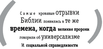 Легко сделать вывод о том, что эти озарения пророков, эти представления об очистившемся Израиле отражают намеренный отказ от племенного прошлого с его варварством, которое ярче всего представлено в повествованиях Девтерономиста (автора Второзаконнической истории) о завоевании Ханаана. В таком случае Книга Иисуса Навина представляет древний шовинистический милитаризм, который вызывал насмешки Амоса и подобных ему радикалов. У такой точки зрения с ее четкой исторической схемой есть один существенный недостаток: мы не вправе утверждать, что самые кровавые отрывки Писания были созданы гораздо раньше прочих и что последующие поколения переросли отраженные там примитивные склонности людей.