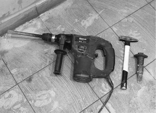 Очистка поверхности от кафеля осуществляется хорошо проверенным дедовским способом: если в хозяйстве нет перфоратора, который ускорил бы данный процесс раза в три, то остается только вооружиться молотком и зубилом и приступать к работе (рис. 2.8, 2.9). К сожалению, ничего принципиально более нового и современного до сих пор придумано не было. Так что придется немного попотеть.