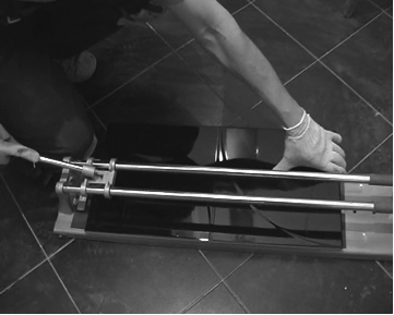 Принцип работы кафелереза максимально прост и понятен: вначале плитка надежно закрепляется и по линии будущего разреза колесиком проводится прямая линия. После этого вам остается только надавить на рычаг, и плитка разламывается на две части. Прилагать никаких особенных усилий не требуется, а весь процесс займет от силы минуту.