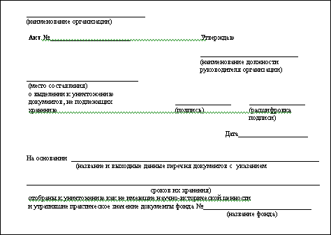 Необходимо учесть, что выделенные к уничтожению документы, в дальнейшем использовать нельзя, поэтому после утверждения данного акта необходимо составить акт об уничтожении документов с истекшим сроком хранения. Данный акт составляется в том случае, если организация самостоятельно уничтожает документы.
