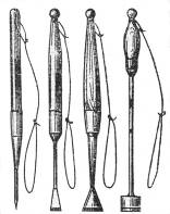 Классическая неразборная пешня (рис. 5) состоит из массивной рукоятки и металлической рабочей части. Материал рукояти – древесина вязких пород, не склонных трескаться: бук, вяз, клен, береза. Рукояти, выполненные из хвойных пород, недолговечны, равно как и пластмассовые. Дубовые и металлические рукояти весьма надежны, но через них удары пешни о лед сильно отдаются в руки рыболова.