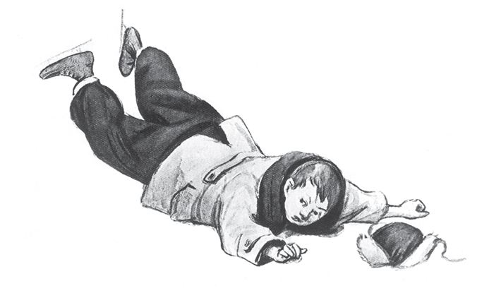 Оттолкнулся ногой и снова – бух носом! Коньки-то по песку не едут! Лежит Котька на животе и говорит: