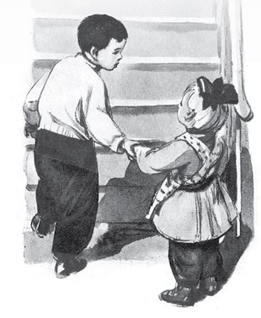 – Нет, – говорит Котька, – я не видал. Это я сам посыпал, потому что она была скользкая и я не мог на неё взобраться.