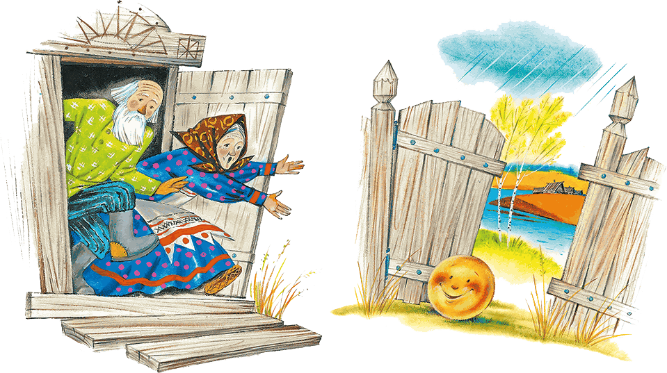 – Я колобок, колобок!По амбару метён,По сусечкам скребён,На сметане мешён,В печку сажён,На окошке стужён.Я от дедушки ушёл,Я от бабушки ушёл,Я от зайца ушёл,Я от волка ушёл,От тебя, медведь,Полгоря уйти.И покатился колобок – медведь только вслед ему посмотрел.