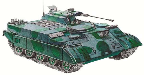 Вспомогательное вооружение — два пулемета калибра 7,62-мм и дымовые гранатометы, смонтированные в лобовой части башни по обе стороны от пушки.