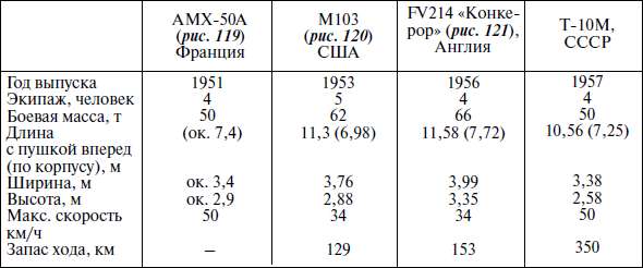 Подробно описав все качества, характеризующие модель Т-10М, рассмотрим ее в сравнении с некоторыми тяжелыми танками, созданными в 1950-е годы в западных странах, для чего обратимся к таблице 2.