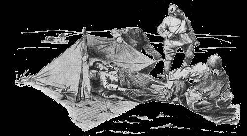 Но угроза не помогла — Беликов продолжал валяться. Сдвинув брови, медлительно-взбешенно Андрей Кравков поднялся на ноги и пошел к лагерю, на ходу вынимая наган. Пришла ему суровая минута спросить своего юного спутника: куда он пойдет — вперед, с ними, или останется здесь навсегда? Срыву он выхватил закрепленные колышки у палатки и отдернул одно полотнище. Но жестокое слово, клокотавшее в его груди и сверкавшее в глазах, застряло в глотке.
