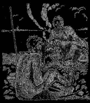 Был ясный полдень. На песке перед Дятловым тлел грудок золотистых углей. Рядом, вытянув худые ноги в лаптях, сидел древний старик. Запрокинув ему на колени русую головеньку, лежал голубоглазый мальчишка. Набегая на песок, мерно плескались позади них волны большого озера.