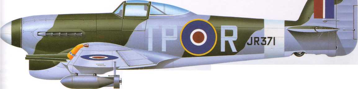 жщиков “Хаукер-Тайфун” Королевских ВВС. юруженный четырьмя 20-мм пушками, “тай-гн" мог нести до 1000 фунтов бомб или восемь жетных снарядов. Полный его залп по разру-ительной силе был равен бортовому залпу личного крейсера, этого было достаточно, что-разнести любое судно.