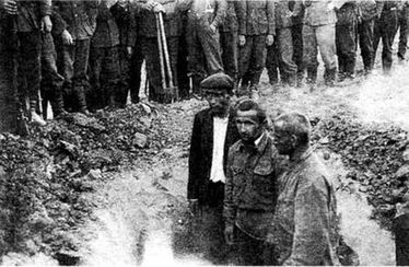 Советские военнопленные в Шталаге ХД (военный округ Гамбург). Из-за отсутствия бараков они рыли землянки для защиты от холода и дождя. Осень 1941 г.