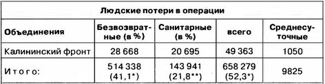 Примечания: *в процентах к составу трех фронтов к началу операции. **в процентах к общим потерям.