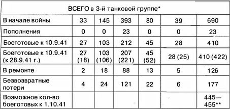 ** в некоторых публикациях количество танков в 3-й ТГ-р (512) подсчитаны без учета полученного пополнения и ремонтного фонда [29].