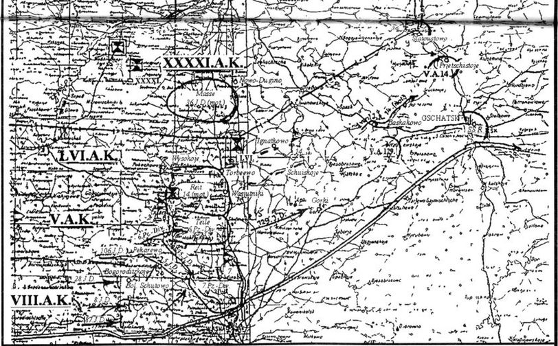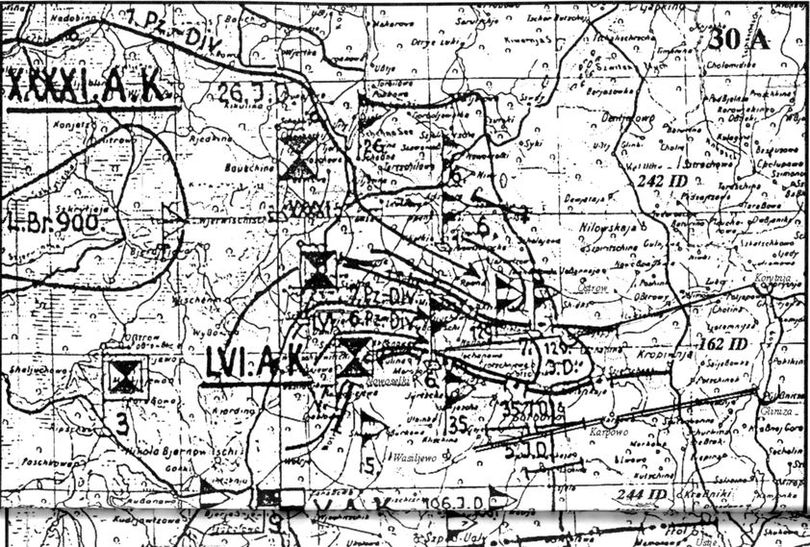 Схема 18. Группировка 3-й ТГр противника на стыке 30-й и 19-й А на 1.10.41 г. (копия карты). Источник: Glantz D.M. «Atlas» [88]