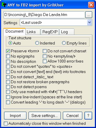 Как правило, я использую для чтения обыкновенные текстовые файлы (txt), не озабочиваясь даже их компрессией (к чему это при цене гигабайтной SD-карты в 70 долларов?). Для конвертирования в формат fb2 (когда нужно сохранить изображения) я рекомендую использовать маленькую утилиту ANY to FB2 нашего старого знакомого Дмитрия Грибова: