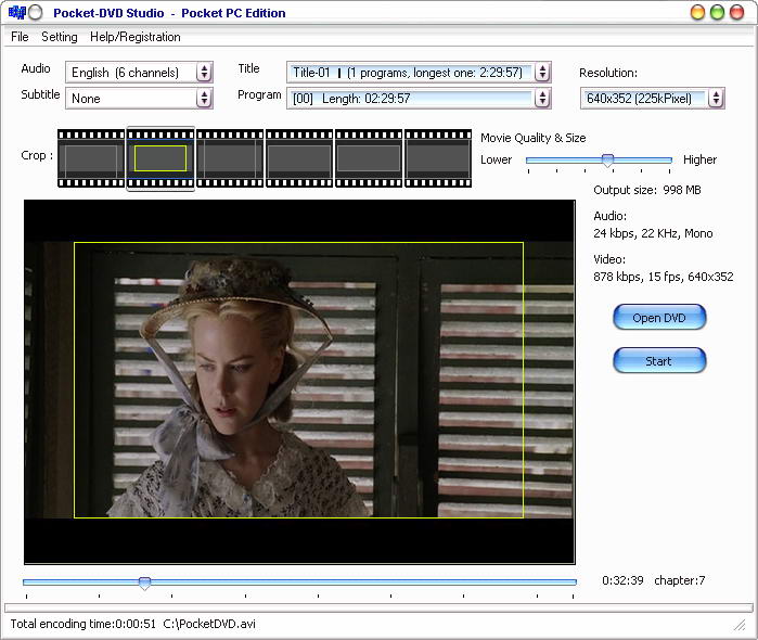 От слухалок плавно переходим к смотрелкам. Вот вам откровение: на HP iPaq hx4700 невероятно удобно смотреть DVD фильмы! На Пальме смотреть тоже как бы получалось (разумеется, методом перректального удаления гланд в силу врожденной несовместимости PalmOS ни с чем, кроме самого себя), но практического смысла не имело. Разве что перед друзьями форсануть: «Ну ты понял, в натуре, как у меня тут всё круто заварено?!». На самом же деле, проигрывая DVD, Tungsten T3 каждые 15 секунд захлебывался (нет же никакого графического ускорителя, как на топовых Pocket PC машинах!), глотал кадры, морозил экран, терял звук – короче, прототип на стадии альфа-тестирования. На HP iPaq hx4700 фильмы смотрятся легко, плавно, с изумительной картинкой и в полный кайф. Делается это просто. Сначала вы покупаете гигабайтную карточку Compact Flash (чуть больше 100 долларов. Можно, конечно, и Secure Digital, только зачем? Во-первых, CF хоть и немного, но дешевле, во-вторых, убиваете сразу двух зайцев: ведь в HP iPaq hx4700 можно одновременно пользоваться картами обоих форматов). Далее, устанавливаете на десктопе (или ноутбуке) программу PocketDVD Studio, которая быстро и надежно подгонит фильм под нужное разрешение экрана: