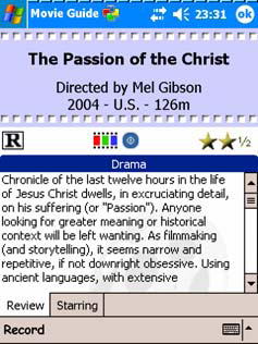 Из всех киносмотрелок безусловно лучшей является «гунёвый» (GNU, читай «бесплатный») BetaPlayer. Изумительно легкая, элегантная и эффективная программулина. В паре с PocketDVD Studio являет собой идеальную DVD фабрику для машины вашей мечты. Теперь нам остается рассмотреть программы для удовольствия в чистом виде. Это самая субъективная часть Саги, поскольку, что-что, а развлекаются люди по-разному. Рискну, тем не менее, предположить, что мои утехи по большей части протекают в мейнстриме. Начнем со знакомого по PalmOS LeonardMartinMovieGuide от Landware – исчерпывающей киноэнциклопедии: 21349 фильмов, 5201 кинорежиссер, 30595 актеров, операторов, звукооператоров и прочих полезных кинодеятелей. Самое потрясающее в энциклопедии Леонарда Мартина – автоматическое обновление базы данных через интернет при заданной регулярности: раз в день, неделю, вручную, а то и при каждом запуске ActiveSync. Безусловный рекомендамс: