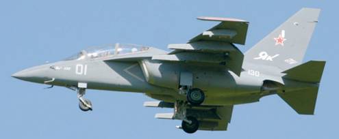 Напомним, в апреле 2002 г. Як-130 был выбран в качестве базового самолета для основной и повышенной подготовки летчиков Военно-Воздушных Сил России, после чего НАЗ «Сокол» был выдан стартовый контракт на постройку первых 12 серийных самолетов. В конце прошлого года на трех опытных машинах (№01, 02, 04) успешно завершился очередной этап государственных совместных испытаний, предусматривающий отработку боевого применения базового комплекса вооружения Як-130 (управляемые ракеты «воздух-воздух» Р-73, неуправляемые ракеты калибра 80 мм, авиабомбы калибра 50-500 кг общей массой до 3000 кг, пушечная установка калибра 23 мм). Недавно первый опытный Як-130 получил новую серую окраску (на фото). Всю программу ГСИ самолета Як-130 планируется закончить в этом году (см. «Взлёт» №1-2/2009, с. 38). Як-130 является основным компонентом перспективного учебно-тренировочного комплекса ВВС России, включающего также интегрированную систему объективного контроля, учебные компьютерные классы, пилотажные и специализированные тренажеры.