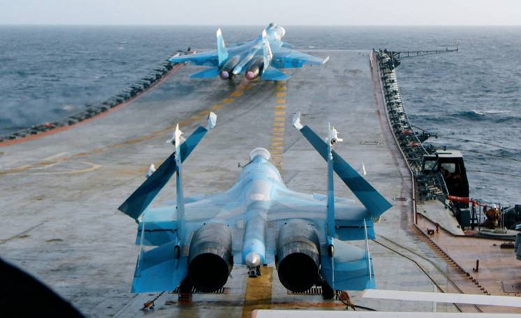 Но самое главное действо началось только два месяца спустя – 5 декабря 2008 г., когда в соответствии с планом боевой подготовки Военно-морского флота России, был дан старт походу корабельной авианосной группы Северного флота в северо-восточную часть Атлантического океана и в Средиземное море. В состав группы были включены тяжелый авианесущий крейсер «Адмирал Флота Советского Союза Кузнецов», большой противолодочный корабль «Адмирал Левченко», самолеты и вертолеты корабельного базирования, а также суда обеспечения «Сергей Осипов» и «Николай Чикер». Также в различные периоды похода было запланировано взаимодействие корабельной авианосной группы Северного флота с кораблями и судами Балтийского и Черноморского флотов ВМФ России. Свое место на борту «Кузнецова» заняла корабельная авиация – девять истребителей Су-33, два учебно-боевых самолета Су-25УТГ и четыре вертолета Ка-27.