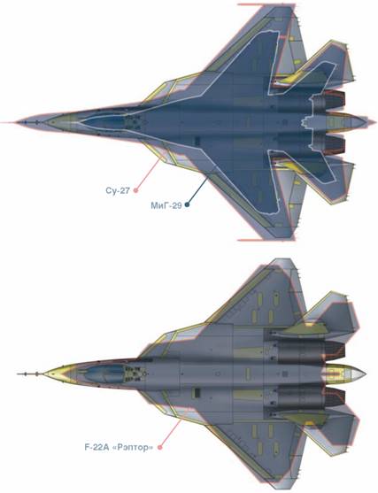 Сравнение размеров ПАК ФА и основных истребителей четвертого и пятого поколений