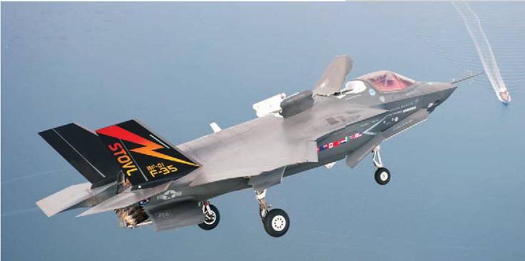 В заключение, несколько слов о международной промышленной кооперации по программе F-35. Головным подрядчиком выступает американская компания «Локхид Мартин», субподрядчиком — «Нортроп Грумман», обеспечивающая разработку палубного варианта самолета, а также техническую и экспертную поддержку по всей программе, выпуск отдельных агрегатов конструкции. Партнером так называемого 1-го уровня является Великобритания, чья компания «BAE Системз» оказывает экспертную и техническую поддержку в разработке модификации с коротким взлетом и посадкой, участвует в проведении летных испытаний, выпуске отдельных элементов топливной системы, системы аварийного покидания самолета и системы жизнеобеспечения; кроме того, британская компания «Роллс-Ройс» активно участвует в разработке силовой установки самолета.