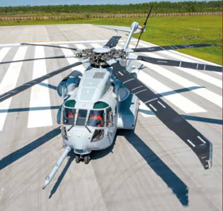 5 мая 2014 г. компания Sikorsky осуществила выкатку первого летного прототипа нового тяжелого транспортного вертолета CH-53K King Stallion, создаваемого, в первую очередь, по требованиям авиации Корпуса морской пехоты США. В рамках подписанного с ВМС США контракта стоимостью 3,8 млрд долл. на этап разработки и демонстрации (SDD – System Development and Demonstration) компания должна построить два экземпляра для наземных испытаний, пять летных прототипов и четыре предсерийных машины. Облет первого летного прототипа планируется выполнить в 2015 г. Текущие потребности КМП США в новом вертолете заявлены в размере 200 машин, которыми намечается вооружить восемь строевых транспортных эскадрилий, одну учебную и одну эскадрилью резерва, причем состояния начальной оперативной готовности CH-53K должен достичь уже к 2019 г. Совокупная стоимость закупаемых серийных машин составит не менее 23 млрд долл. Максимальная взлетная масса CH-53K составит 38,4 т, грузоподъемность – 15,9 т. В качестве силовой установки применяются три турбовальных двигателя GE38-1B (T408) взлетной мощностью по 7500 л.с.