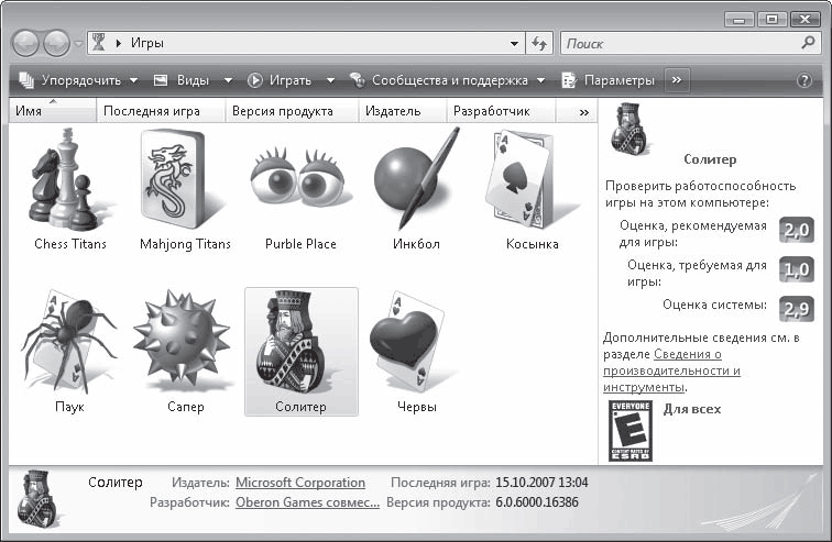 В меню Пуск имеется ярлык Игры, с помощью которого можно открыть обозреватель игр (рис. 4.17).
