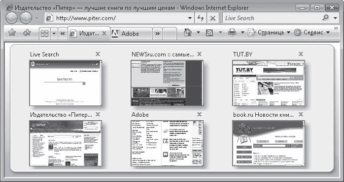 которая находится слева в ряду заголовков вкладок. Щелкнув кнопкой мыши на ней, вы откроете эскизы всех вкладок (рис. 5.6). Выбрав нужный, щелкните кнопкой мыши для перехода на соответствующую ему вкладку.