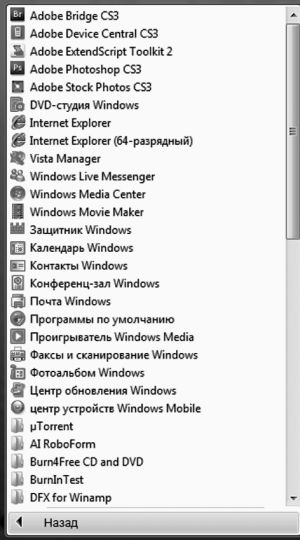 Теперь вернитесь к строчке Все программы – щелкнув по ней, вы откроете список всех установленных на вашем компьютере приложений. Поначалу вы сможете найти в этой папке лишь ярлыки для стандартных программ, входящих в состав самой Windows.