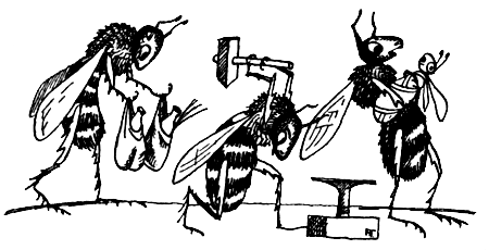 Такое «разделение труда» особенно характерно для общественных насекомых: пчел, муравьев и термитов. Обитатели каждого улья или муравейника делятся на несколько групп. Одни собирают пищу — например пчелы-сборщицы нектара; другие занимаются строительством сот в улье или камер в муравейнике; третьи ухаживают за личинками — кормят их и даже проветривают улей в жаркую погоду. А у муравьев есть еще касты солдат, которые охраняют муравейник от вторжения посторонних насекомых.