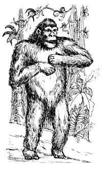 Вот как в 1856 году американский путешественник Поль дю Шайю описывал свою встречу с дикой гориллой в Западной Африке. «Горилла воистину показалась мне каким — то кошмарным исчадием ада — чудовищное существо, получеловек, полузверь, — мы видели подобных ему на картинах старинных художников, изображающих подземное царство. Зверь сделал несколько шагов вперед, остановился, издал отвратительный рев,