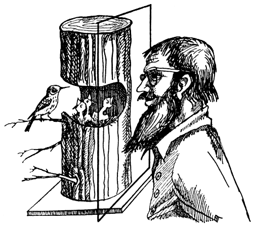 Представьте себе, что мы можем подсмотреть за парой птичек, которые выкармливают свой выводок. Довольно скоро мы начинаем различать, кто из родителей — мама, а кто — папа. Как правило, у них различается оперение, иногда сильно, иногда — немного. Такие наблюдения можно проводить в течение всего светового дня, то есть в июне, когда гнездится большинство наших птиц, — более 15 часов. Мы можем подсчитать, сколько раз птенцы получают корм, кто из них более активен. Словом, такое «подглядывание» помогает узнать о развитии молодых птичек гораздо больше, чем если бы мы взяли их из гнезда, перенесли в лабораторию и выкармливали сами. Это тоже один из методов этологического наблюдения.