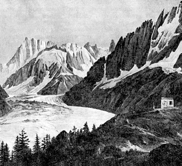 В горах Швейцарии. Цветная акватинта Ф. А. Линка, 1820-е годы.