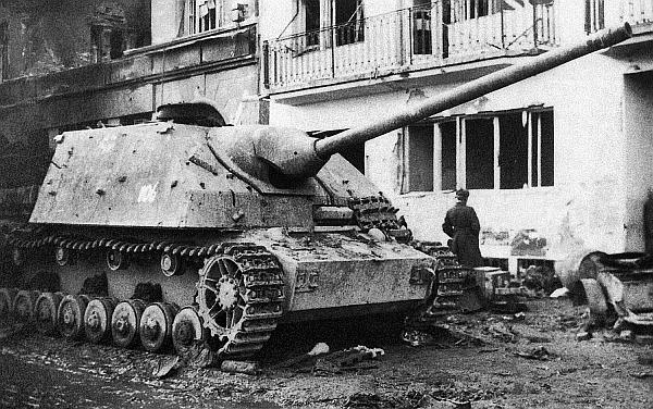 На Западном фронте наиболее результативным был бой «ягдпанцеров» 12-й дивизии СС «Гитлерюгенд» с «шерманами» 1-й польской танковой дивизии генерала Мачека. В тот день немцы настреляли 20 польских танков. Эсэсовские «ягдпанцеры» сыграли важную роль при прорыве немецких войск из Фалезского котла. Они использовались в качестве штурмовых машин.