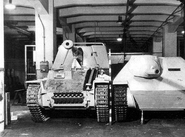 В то же время наступил кризис и в штурмовой артиллерии. В ноябре 1943 года англо-американская авиация подвергла мощной и весьма успешной бомбардировке берлинский завод фирмы Alkett. В результате этого авиаудара были серьезно повреждены цеха и оборудование крупнейшего производителя штурмовых орудий – основного противотанкового средства танковых и моторизованных соединений Вермахта. План производства штурмовых орудий на 1944 год оказался под угрозой срыва. Чтобы не допустить этого, к их выпуску в декабре 1943 года подключилась фирма Кгарр. Поскольку последняя являлась генподрядчиком по выпуску средних танков Pz.IV, то неудивительно, что, приступая к производству штурмовых орудий, крупповцы использовали шасси «четверки». Благодаря использованию рубки от StuG III обе САУ были унифицированы почти на 20%. Но новое штурмовое орудие StuG IV, во-первых, оказалось довольно дорогим, а во-вторых – для их производства использовались шасси танков Pz.IV, которых Вермахту тоже не хватало. Необходимо было искать какое-то иное решение, привлекать к выпуску штурмовых орудий другие предприятия. Специалисты из Управления вооружений сухопутных войск (Heereswaffenamt) обратили свой взор на пражский завод ВММ. На завод поступило указание начать производство штурмового орудия StuG 40. Но эта 23-тонная боевая машина была ему явно «не по зубам». Вот тогда-то и вспомнили о разработанном фирмой ВММ еще в августе – сентябре 1943 года эскизном проекте САУ нового типа – StuG пА – «штурмовом орудии нового образца». Тогда он особого интереса у военных не вызвал, теперь на завод поступил срочный заказ – закончить проект в весьма сжатые сроки.