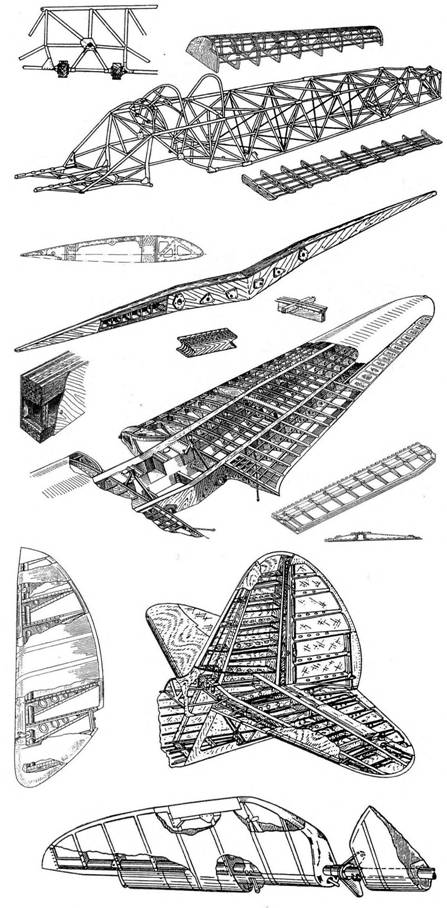 Силовой набор фюзеляжа, крыльев и оперения Як-1.