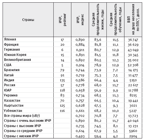 Уровень жизни населения в современной экономической науке всё чаще определяется синтетическим индексом человеческого развития (ИЧР (Human Development Index, HDI), табл. 3.2).