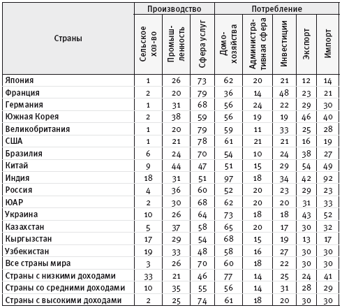 Структурные характеристики экономики Японии нагляднее всего демонстрирует соотношение секторов производства и потребления ВВП (табл. 3.3).