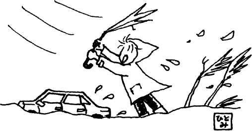 Тайфуном называется тропический циклон с областью низкого атмосферного давления в центре и скоростью ветра не менее 17,2 метров в секунду. Он зарождается в северной части Тихого океана, а также в Южно-Китайском море и распространяется на Азиатский континент, Филиппины и Японию. В Японии в среднем происходит около одиннадцати тайфунов в год. Самые частые и сильные ветры приходятся на период с мая по ноябрь. Небо затягивается плотной серой пеленой, поднимаются волны на море, не смолкая каркают вороны, хлещет дождь, дует, не переставая, сильнейший ветер.