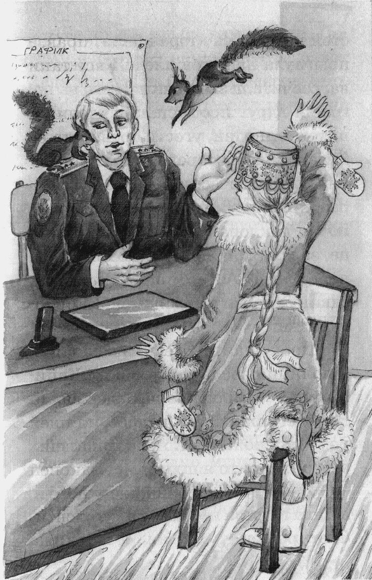 Капитонов оторопел: белка говорит по-человечески да ещё в званиях разбирается! Вот чудеса! Машинально он похлопал себя по карманам: не завалялся ли где, действительно, орешек? А потом пришёл в себя, сдвинул брови и сердито сказал Снегурочке: