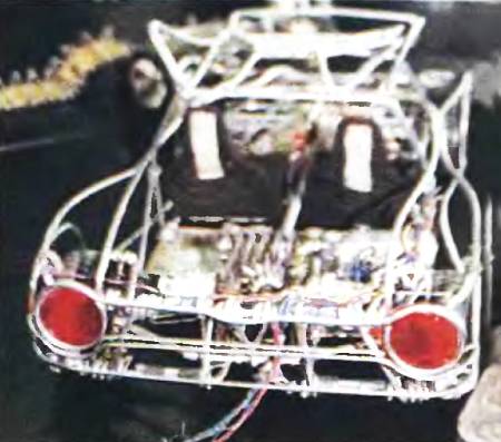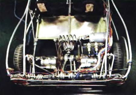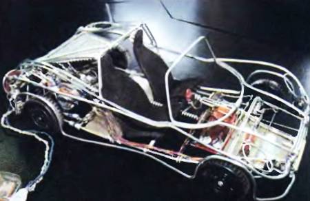 Действующая модель спортивного автомобиля конструкции Календарова с дистанционным управлением.