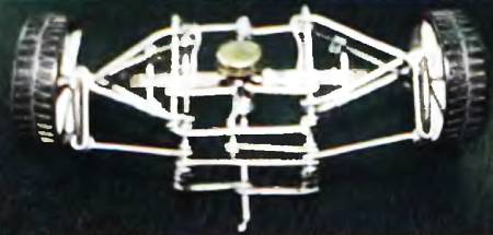 Червячная передача управления колесами модели. Червяк — всего-навсего проволочная спираль, а ведомая шестерня… цветок магнолии из проволоки. Передаточное число 1:137.