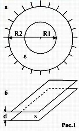 Однако бывают и тучи. Пусть на высоте в 5 км грозовыми облаками покрыт квадрат 10х10 км. В этом случае можно не учитывать кривизну Земли и использовать при определении емкости между почвой и облаком формулы плоского конденсатора (см. рис. 1б).